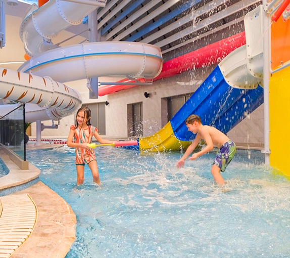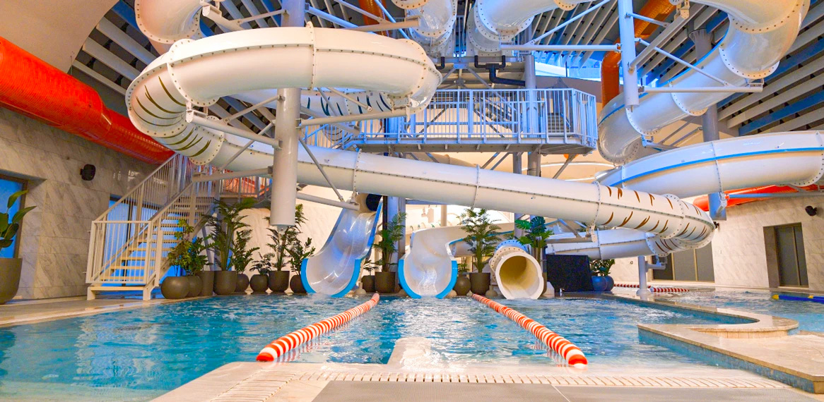 - Splash park (temalı çocuk kaydırakları, fıskiyeler ve havuz animasyonları)